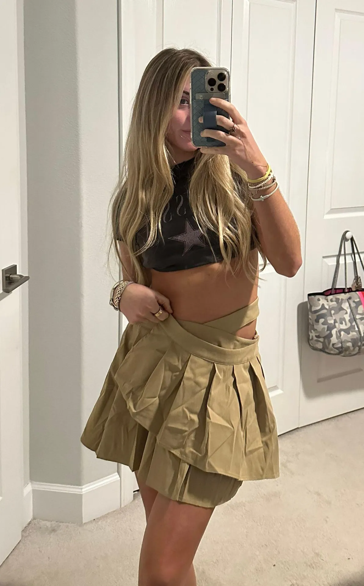 Amazon pleated mini skirt. Khaki tan color. Size small. Runs big. NWT. Women's Casual Cut Out Pleate... Show more
