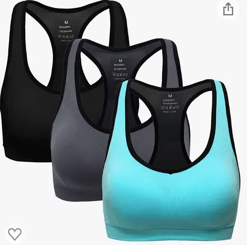 3 pack sports bras (Mint blue, gray, and black) all size small only worn a handful of times selling... Show more