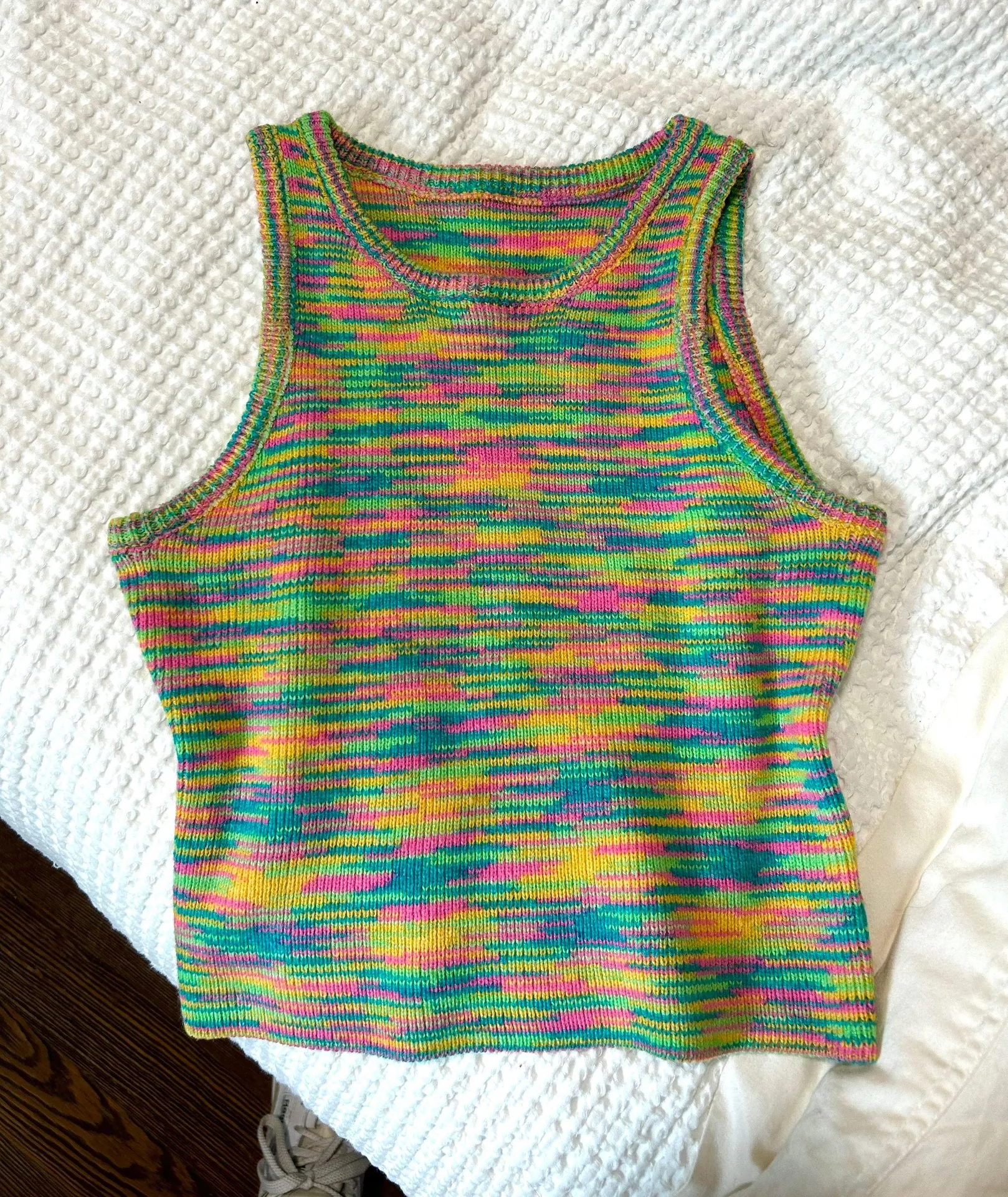 Cute multi colored high neck tank. Size medium with no tears/rips/pilling. Just a tad big in me! Fro... Show more