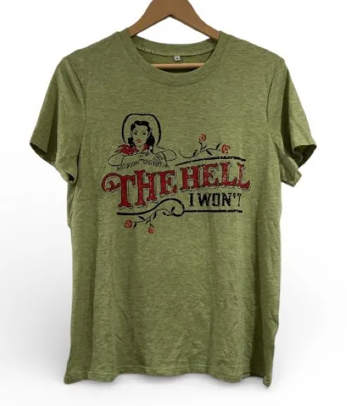 Stylish green graphic t-shirt with bold design. Perfect for casual wear. The Hell I won’t tee stret... Show more