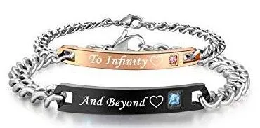 Couples ‘to infinity and beyond’ stainless steel bracelets. Good condition, the gold one has some ma... Show more