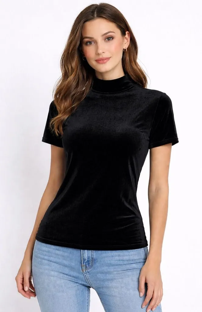 Sleek, timeless, and easy to style. This Ambiance black velvet mock neck top channels classic 90s mi... Show more