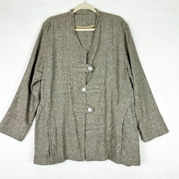 Amelline Linen Blend Japanese Style Jacket Size Large Lagenlook Brown - $48 - From Samantha