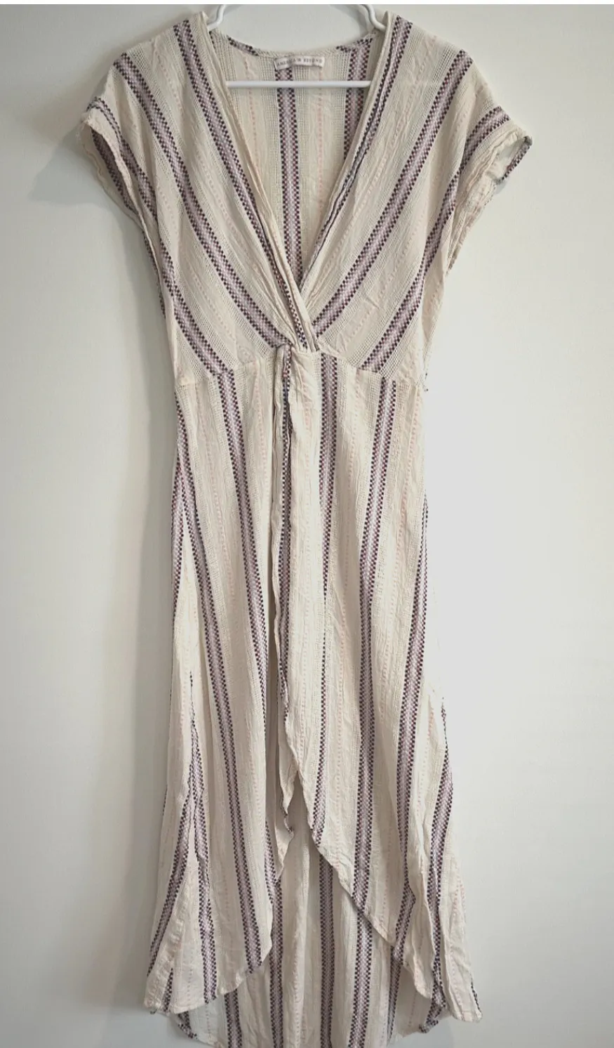 Size: Small - No Size Tag, please see measurements for best fit Pit to Pit: 16" Pit to Longest Hem: 44" Waist: Laying Flat not stretched - 12" Condition: Good Pre-Owned Condition, Light Wear, No Rips,Stains, or Tears.Please see all photos for most accurate representation of condition Color: Beige, Red, Blue, Pink Closure: Pull Over Pockets: No Material: 100% Cotton Sleeve Length: Short Sleeve