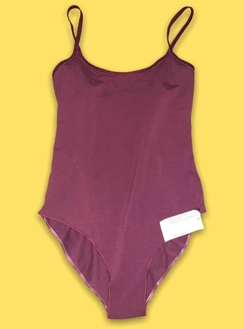 NWT American Apparel Bodysuit • size large • dark burgundy red • elastic ribbon straps • scoopnec... Show more