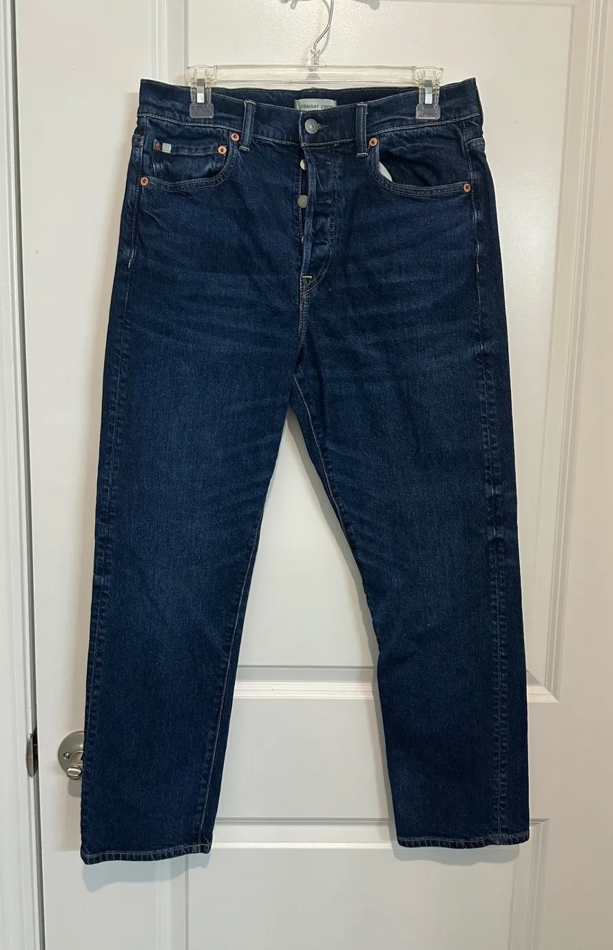 Excellent pre-owned condition. American Eagle Straight Crop jeans in dark wash, size 12 Regular. Fla... Show more