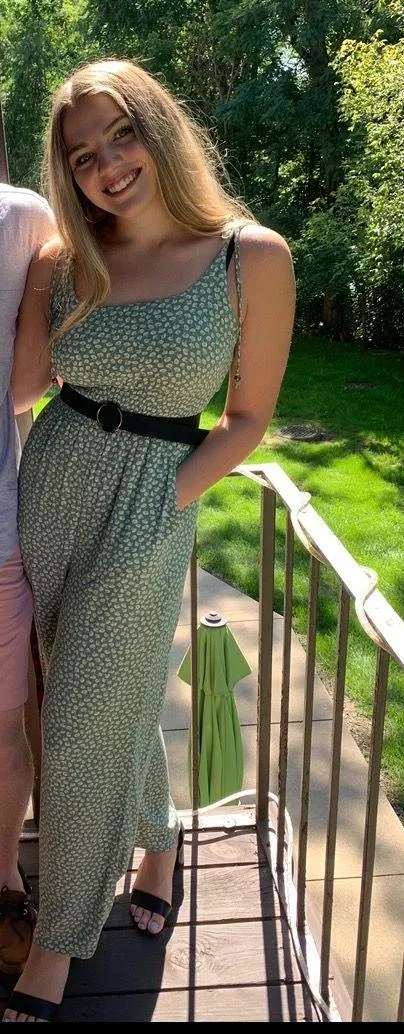 Green floral American eagle jumpsuit (BELT NOT INCLUDED -just added to style) The straps are adjust... Show more
