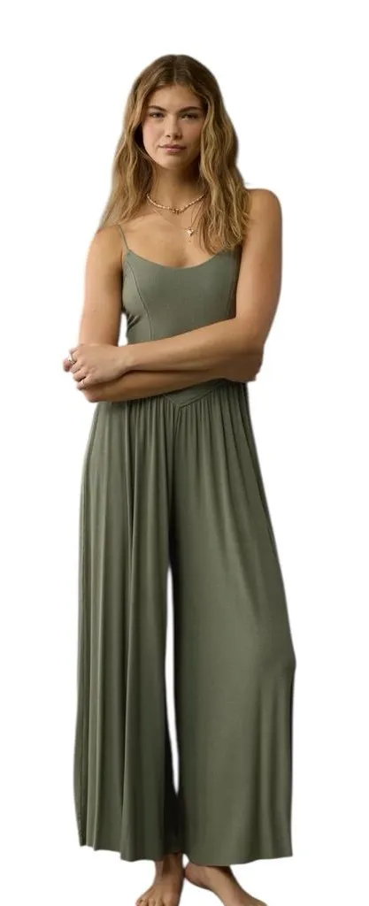 AE Soft and Sexy Rib Wide-Leg Jumpsuit Sz L (12/14) Olive Green Stretch Comfy Relaxed Softness & dra... Show more