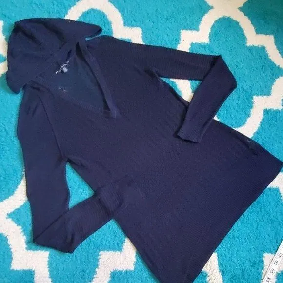 Lightweight open knit hooded transitional sweater size medium with a 17" bust and 28" length