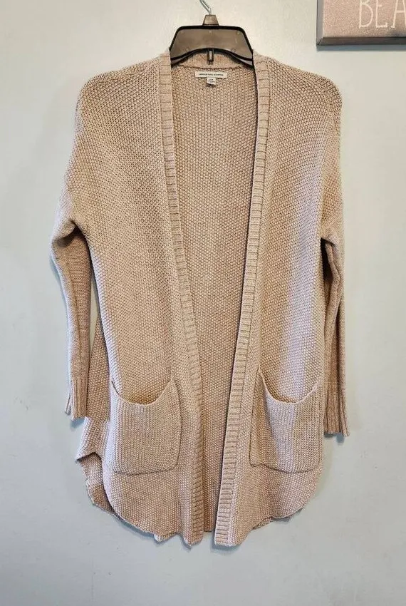 American Eagle Outfitters Cardigan Women's Small Tan Cotton Long Sleeve Open Front Smoke Free Home... Show more
