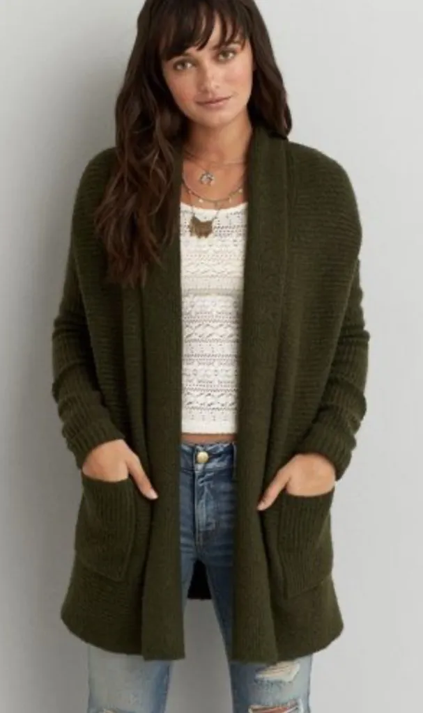 Cozy knit cardigan with pockets. Oversized fit.