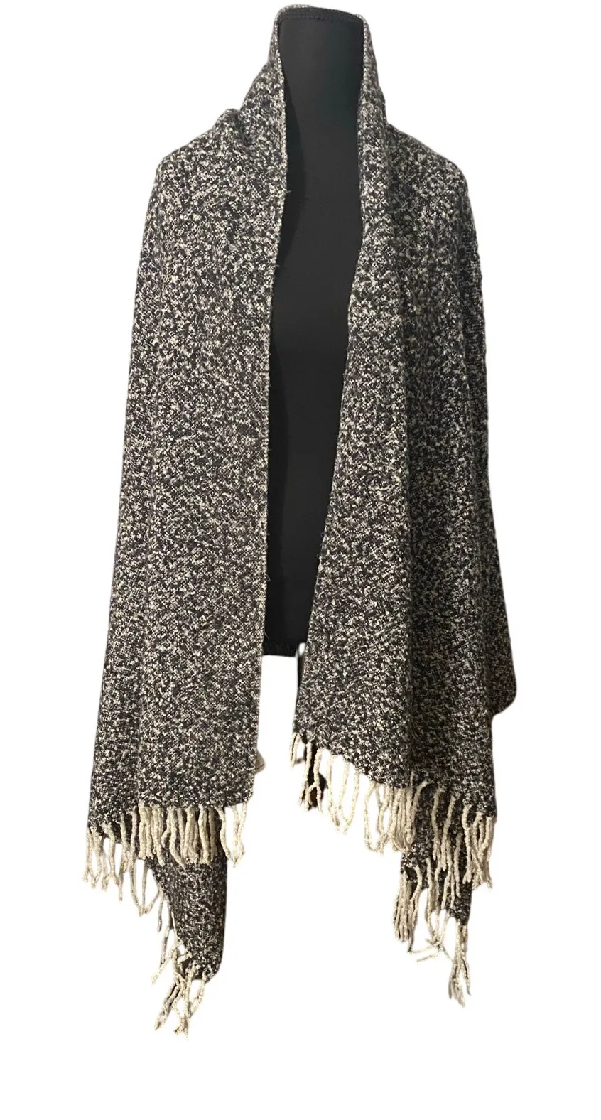 Cozy American Eagle boucle knit fringe wrap/shawl in a soft marled black-gray knit. One size fits mo... Show more