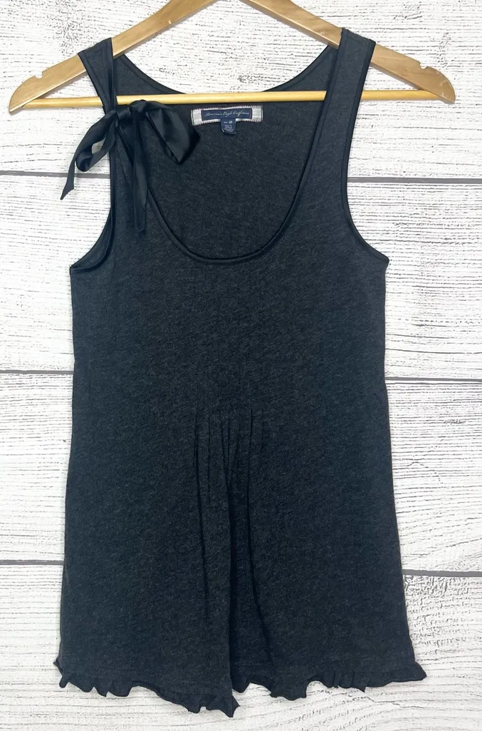 American Eagle Outfitters Charcoal Gray Babydoll Racerback Tank Top with Black Bow Women’s Size XS... Show more