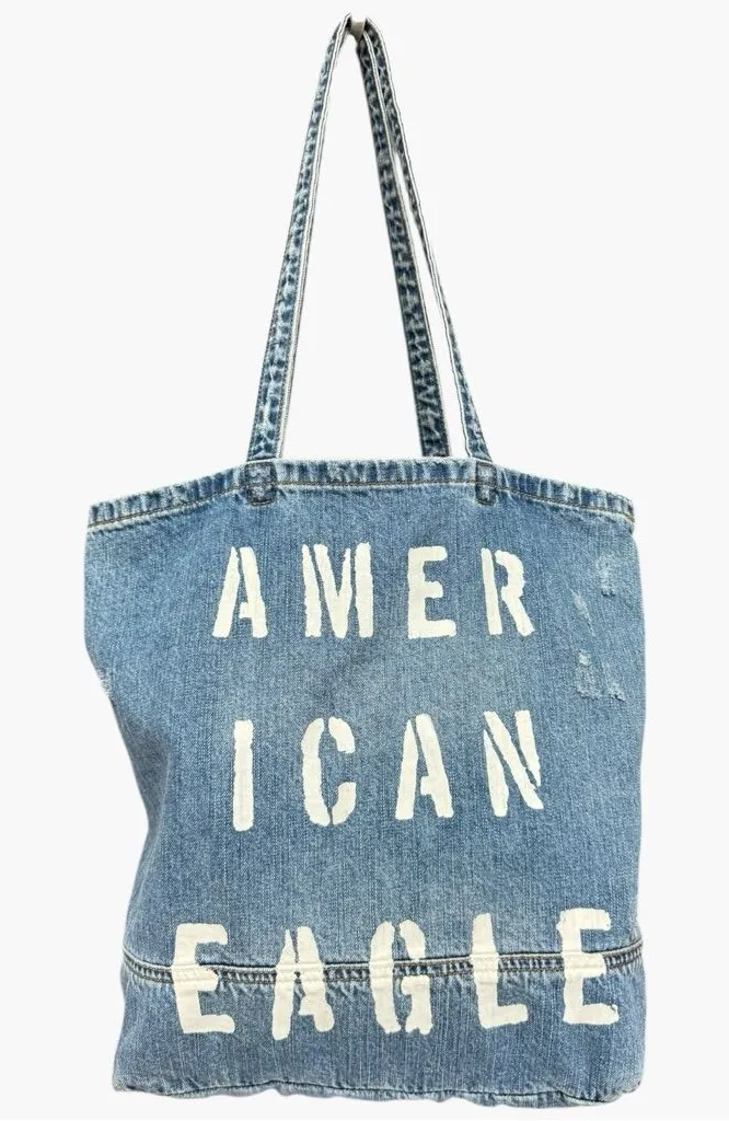 A casual-cool denim tote with bold graphic lettering and lived-in character. Roomy enough for everyd... Show more