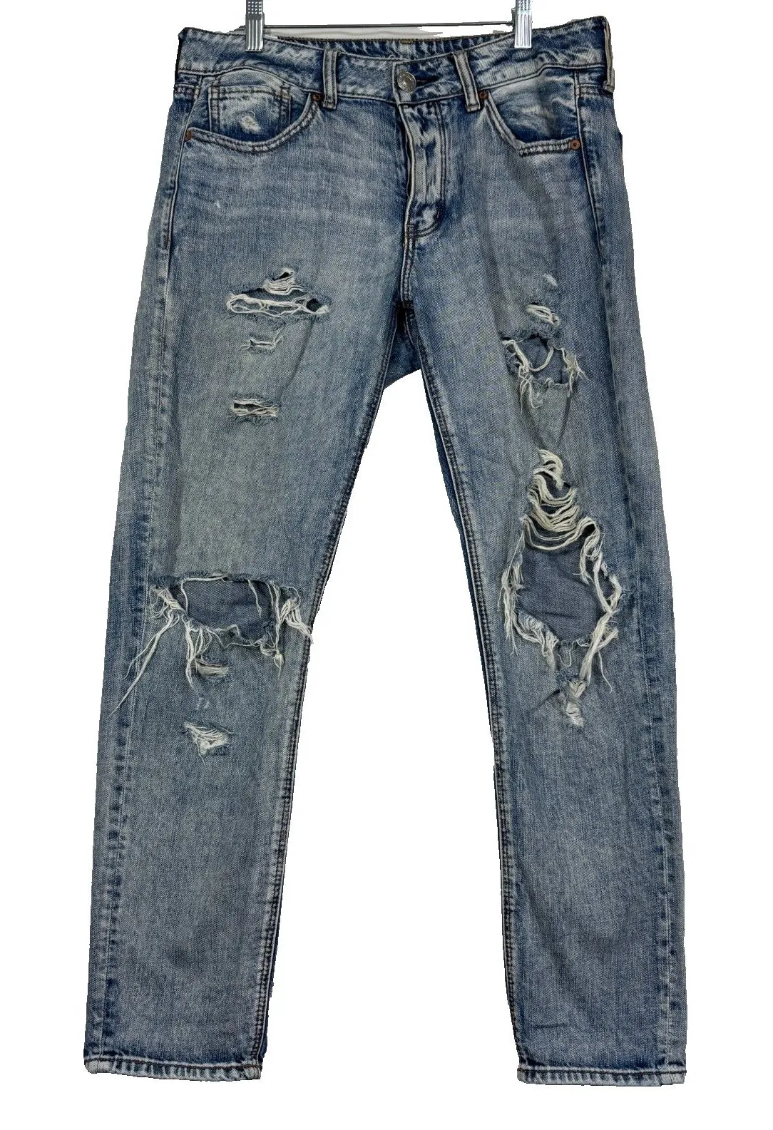 Street Brand: American Eagle Size: 6 Color: Light wash Rise: Mid Inseam: 28" Features: Light-wash de... Show more
