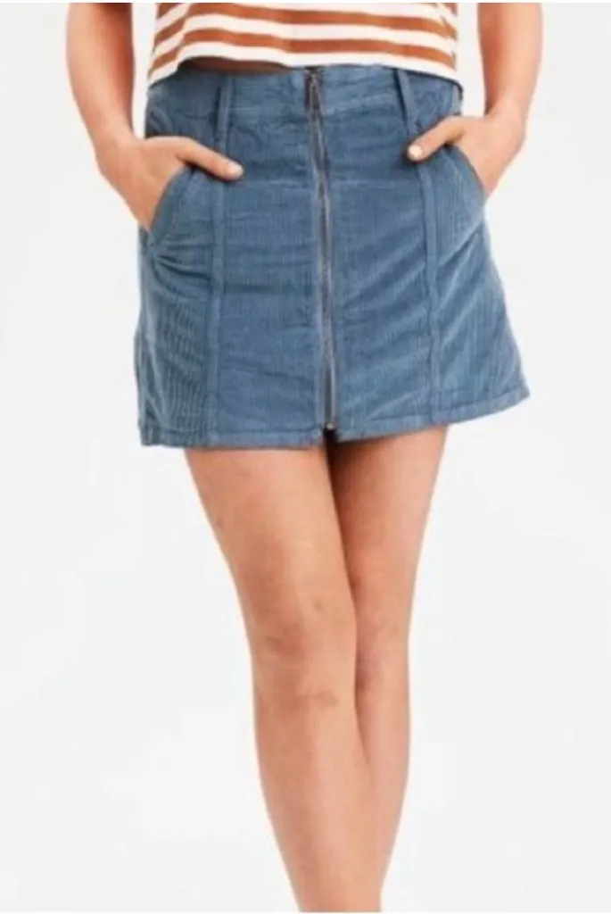American Eagle Hi-Rise A-Line Corduroy Zip Front Mini Skirt Women's Size 6 Reg. Teal in color. Funct... Show more