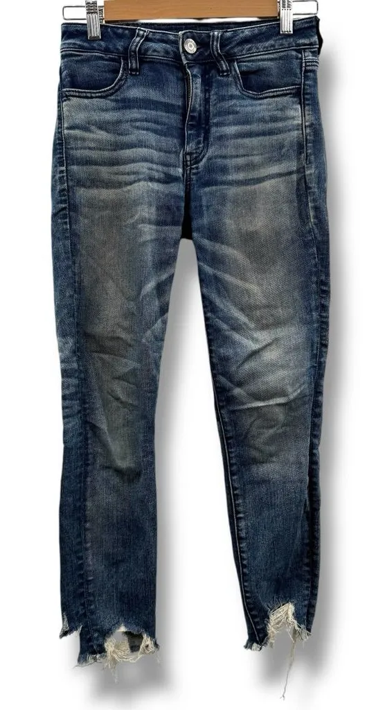 American Eagle Hi-Rise Jegging Crop Distressed Raw Hem Skinny Jeans Designed with a flattering high... Show more