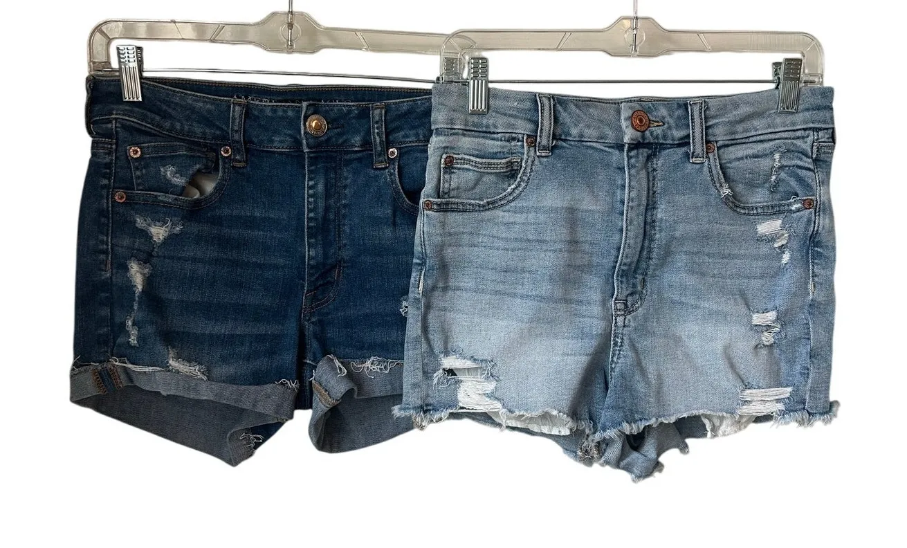 Both size 8 AE Super stretch Light wash are curvy high rise shortie Dark wash are high rise shortie... Show more
