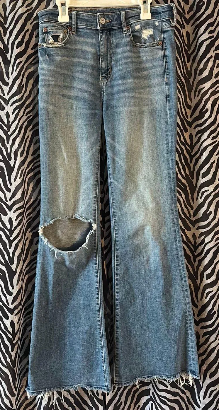 American Eagle super high rise flare jeans. Bought them at Plato’s Closet but now they are short on... Show more