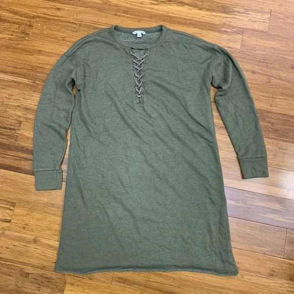 Olive green t-shirt dress from American Eagle Outfitters. This casual dress features long sleeves an... Show more