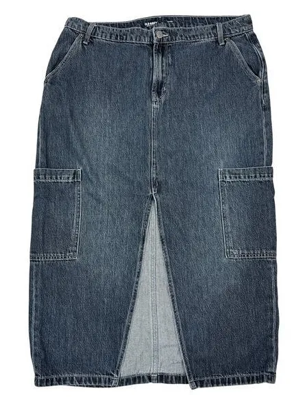 Old Navy Maxi Jean Skirt Mid-Rise Drapey Denim Grunge Retro Dark Wash Fall Punk Autumn Boho Western... Show more