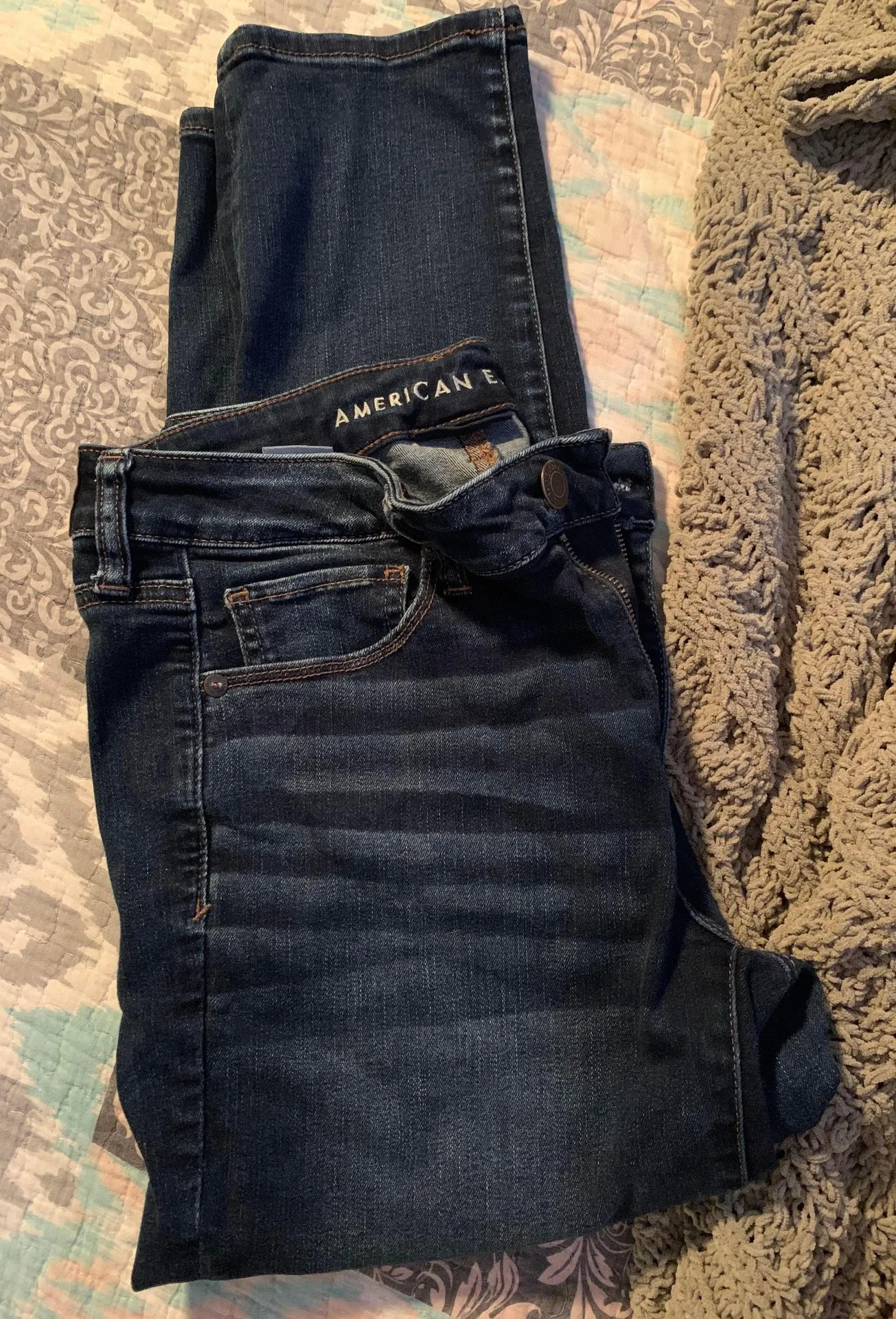 Great pair of AE skinny jeans. Size 14 extra-short. Great condition! I actually bought them off of h... Show more