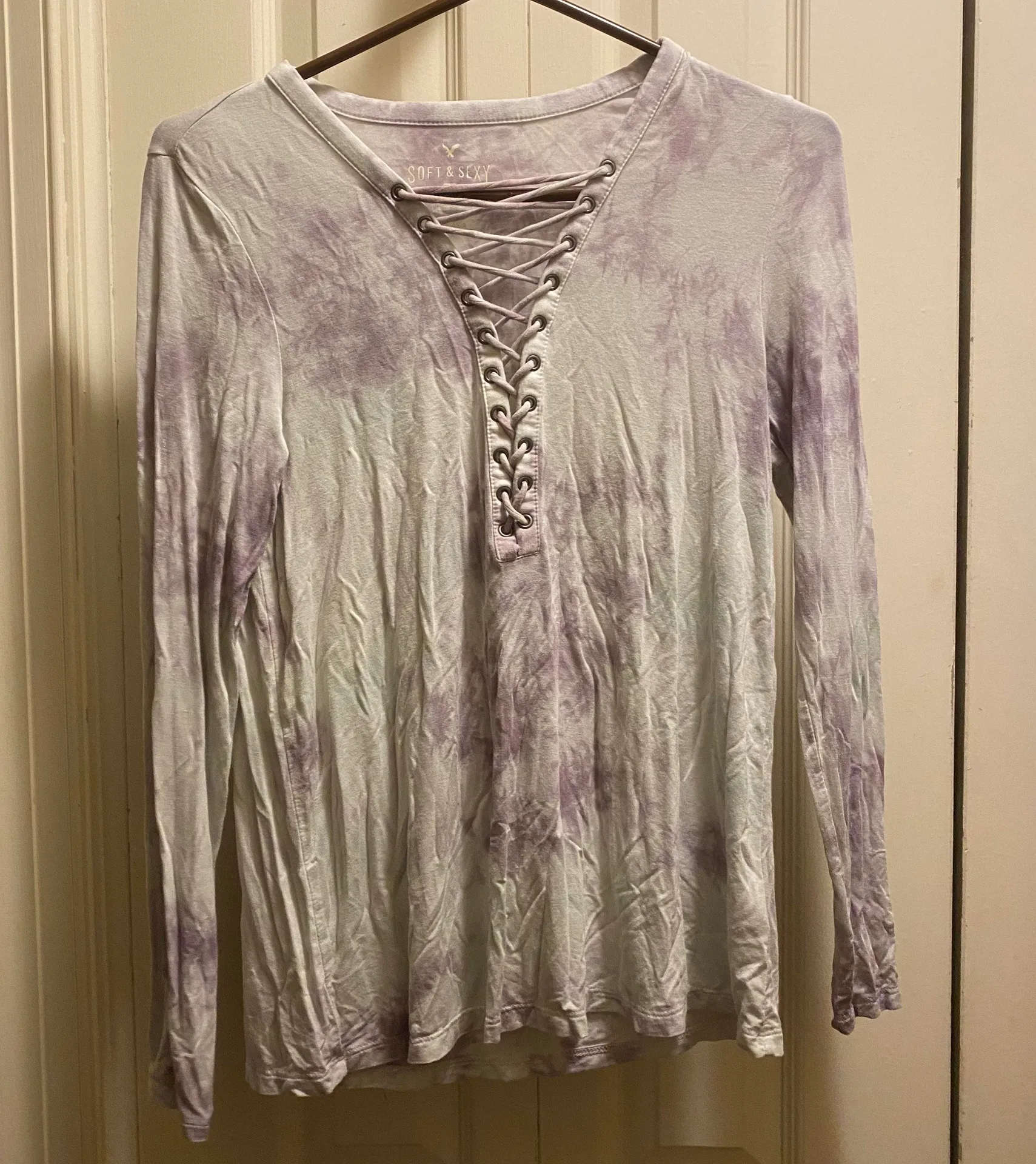 American Eagle Soft & Sexy Lace Up Long Sleeve Size small Pretty purple and white tie dye In excel... Show more