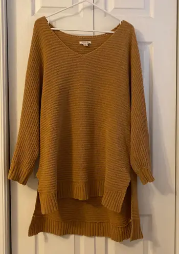 Tan American Eagle sweater, with small v neck. It is slightly longer in the back and the fabric is s... Show more
