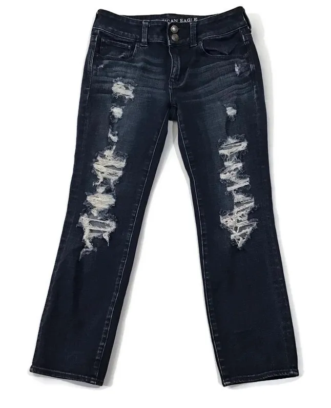 American Eagle Outfitters Artist Crop 360 Super Super Stretch Distressed Jeans. Size 4. The color is... Show more