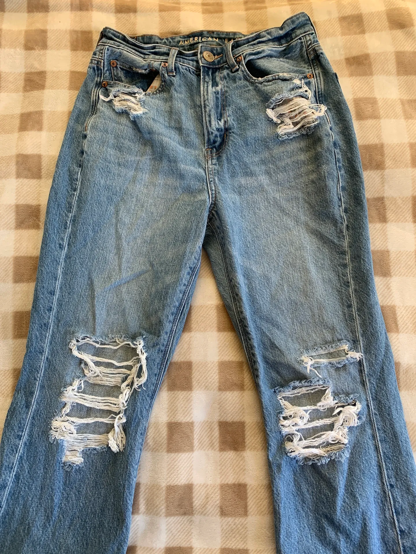hey, welcome to my closet! these are a pair of american eagle ripped bootcut jeans that are a lightw... Show more