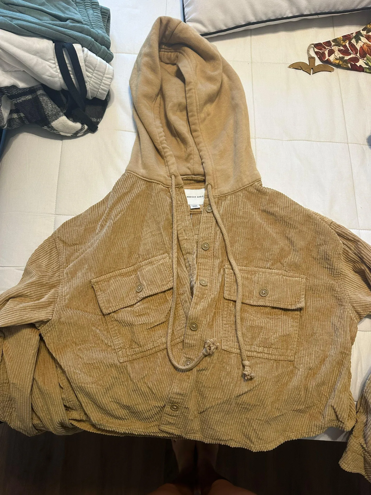 Tan American eagle cropped jacket with pockets NWT!