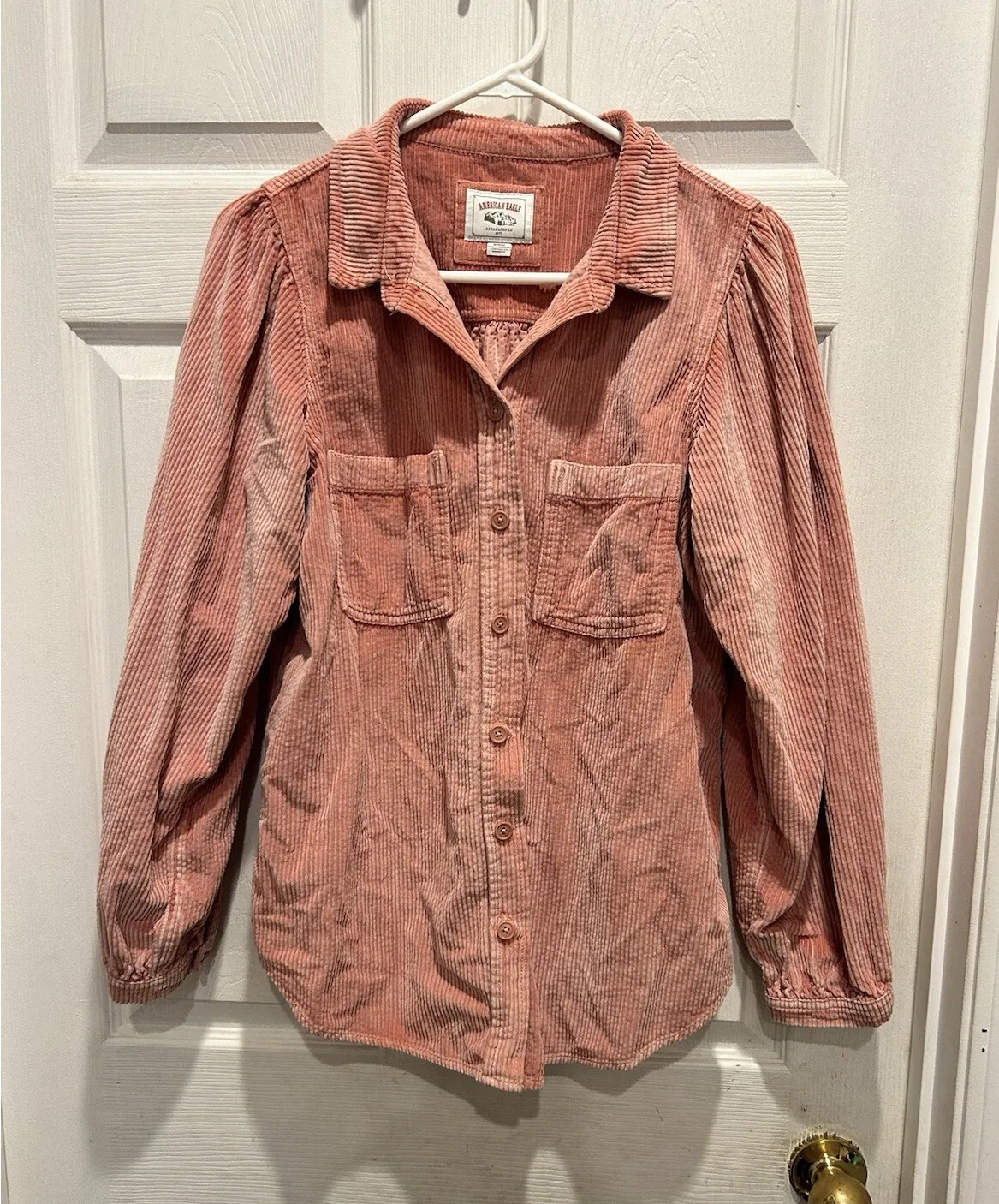 Euc. No flaws. Puff balloon sleeves. Button down. UA to UA 21" Length 26" Measured flat and approx... Show more