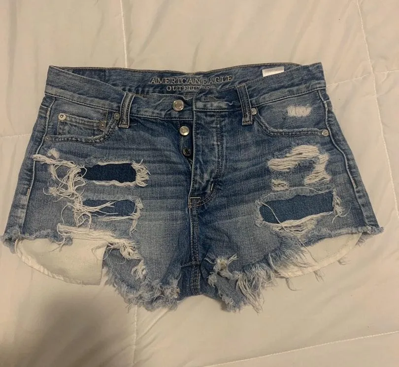 Definitely can’t button these anymore, but they are too cute on! Super cute, distressed denim shorts... Show more