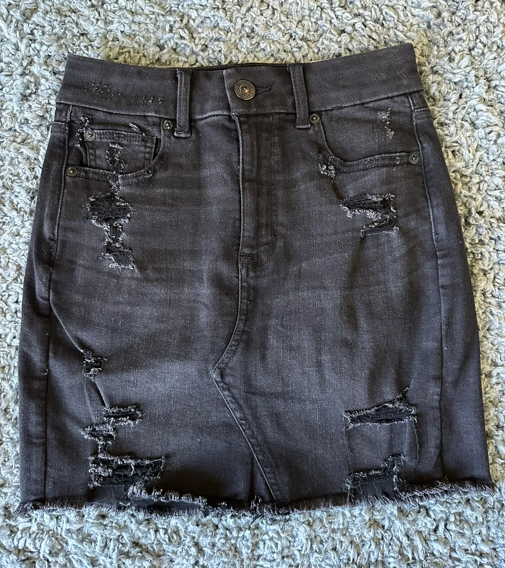 New with tags. Perfect condition. Curvy Size 2 Black ripped jeans skirt. High rise mini.