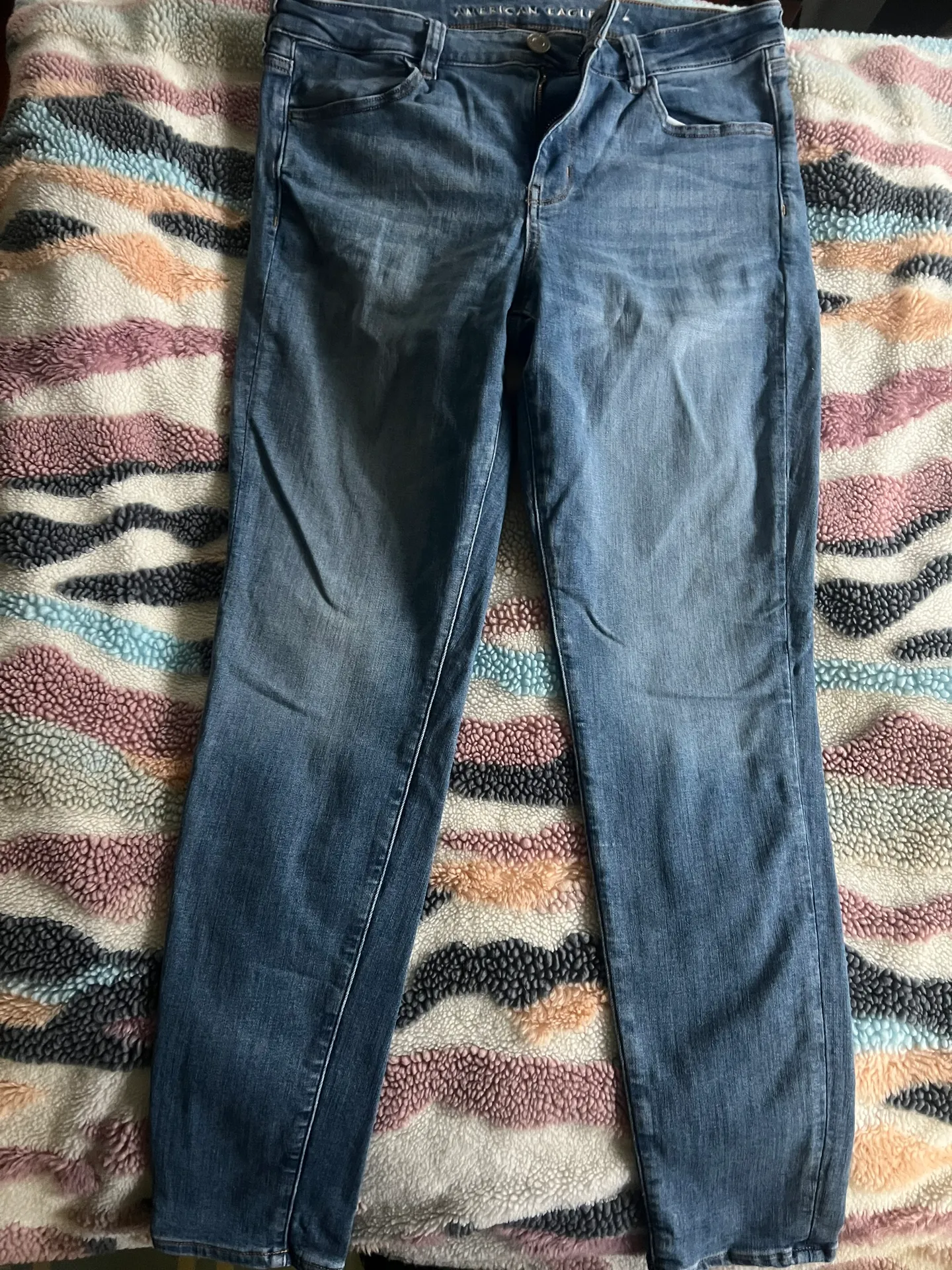 Next level stretch- jegging like. Worn maybe a few times .