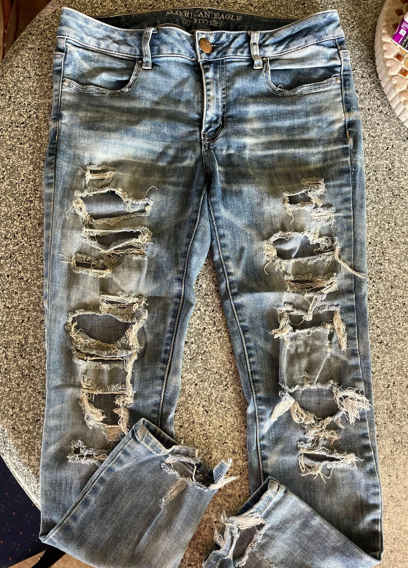 Size 8 short distressed jeans. Gently worn. Smoke free & pet friendly home. 😊