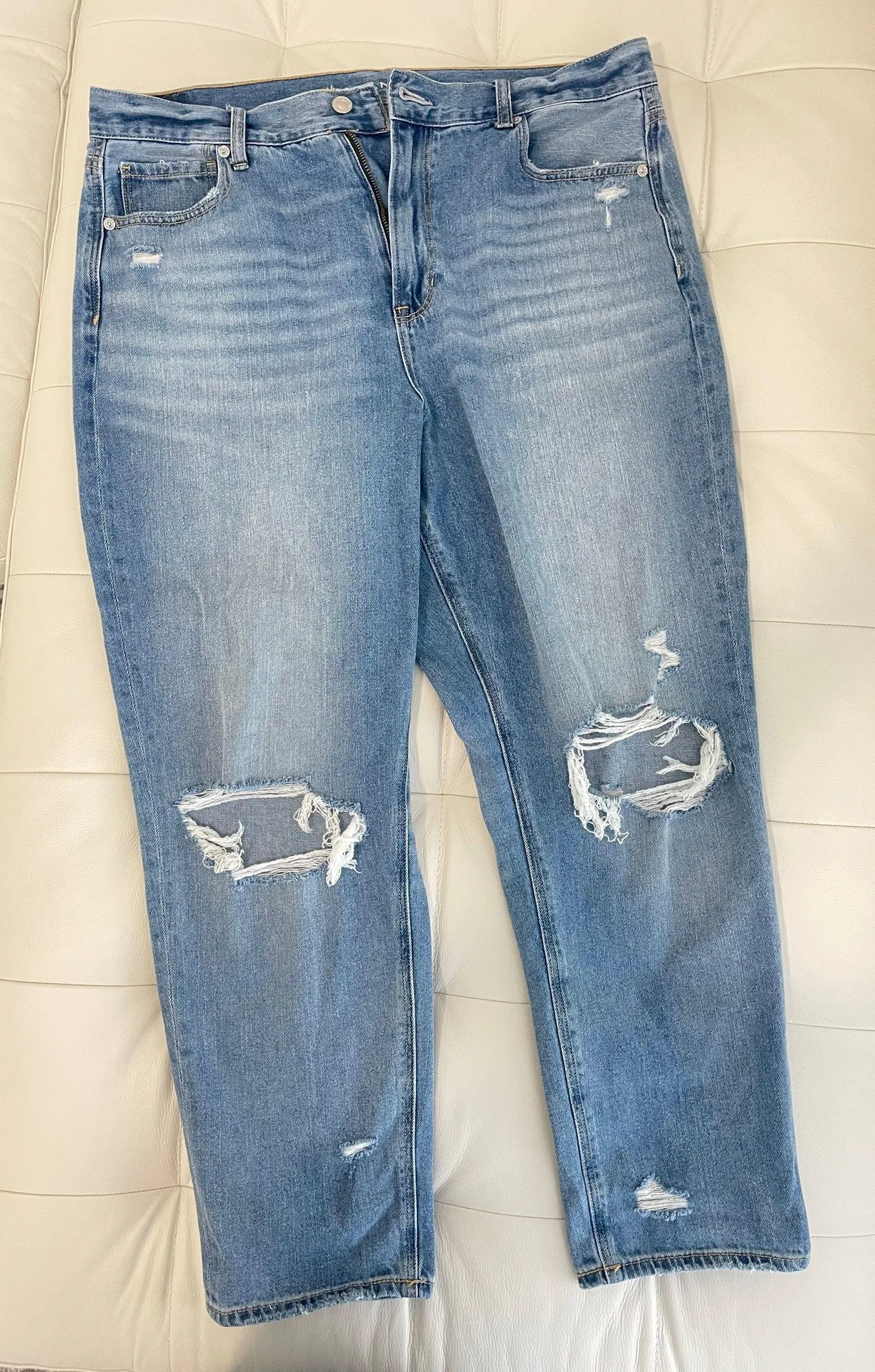 Mom Jean - High waisted - Regular length Light factory distressed denim Worn once.