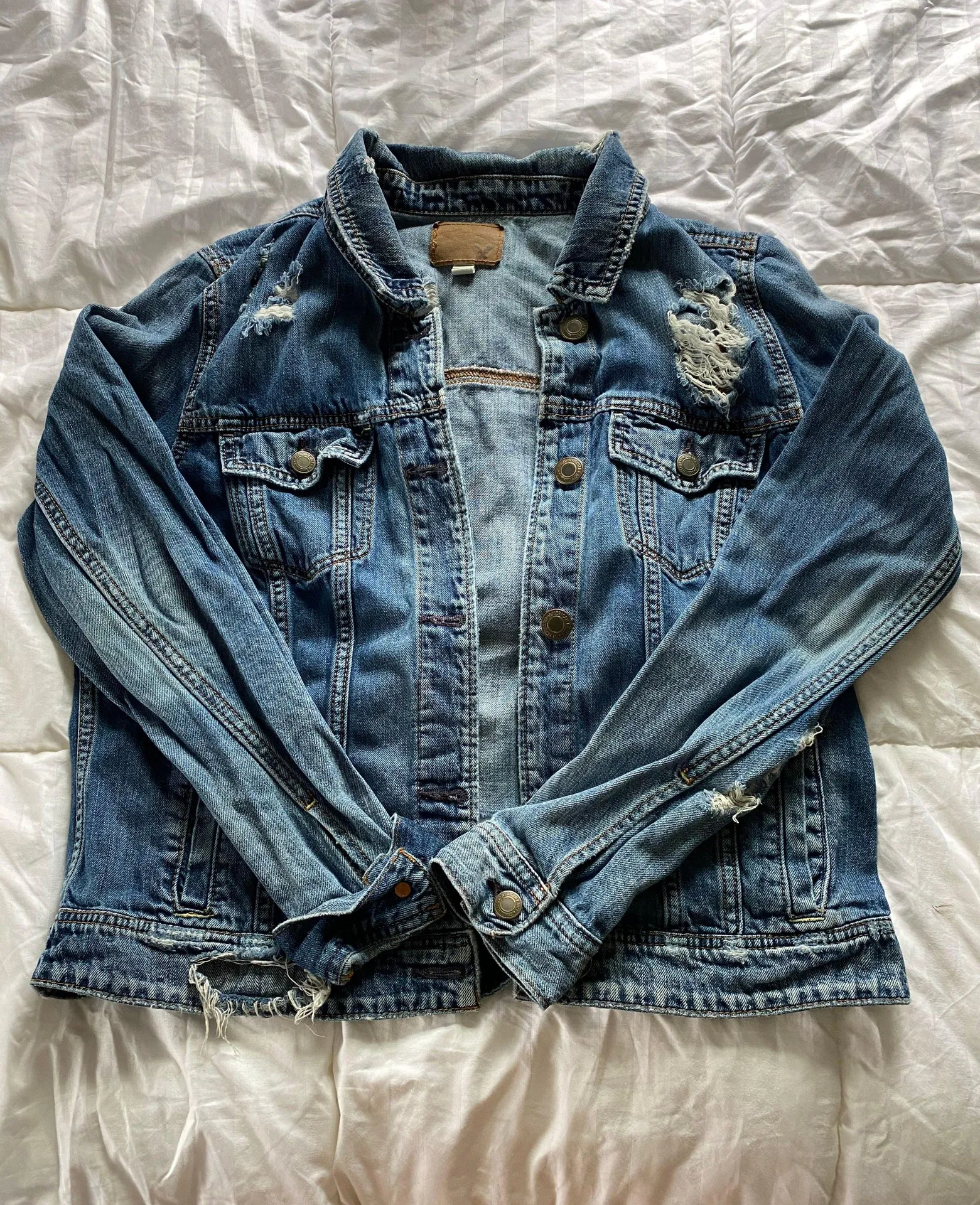 • Super cute ripped jean jacket ! • Fits like a medium not a large • No flaws and in good conditio... Show more