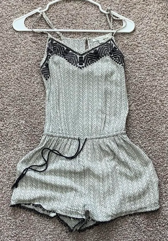 Black and white romper! Can be dressed up, dressed down, or even as a swimsuit coverup! XXS but fits... Show more