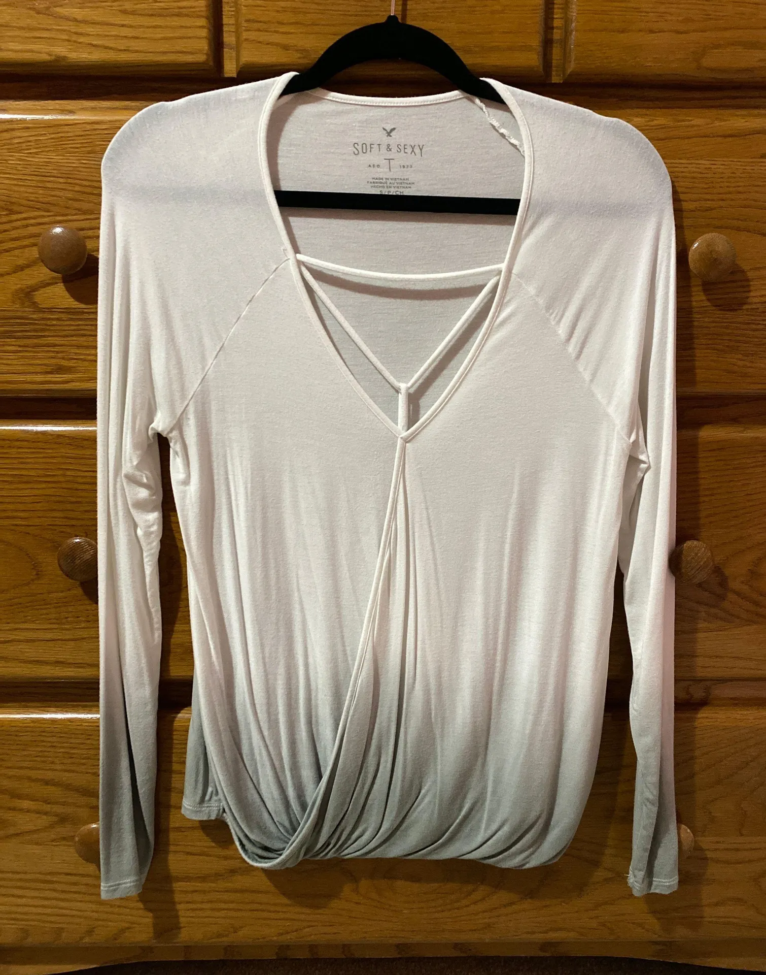 The softest shirt ever ! Cute ombré white & green with a casual/sexy vibe to it!