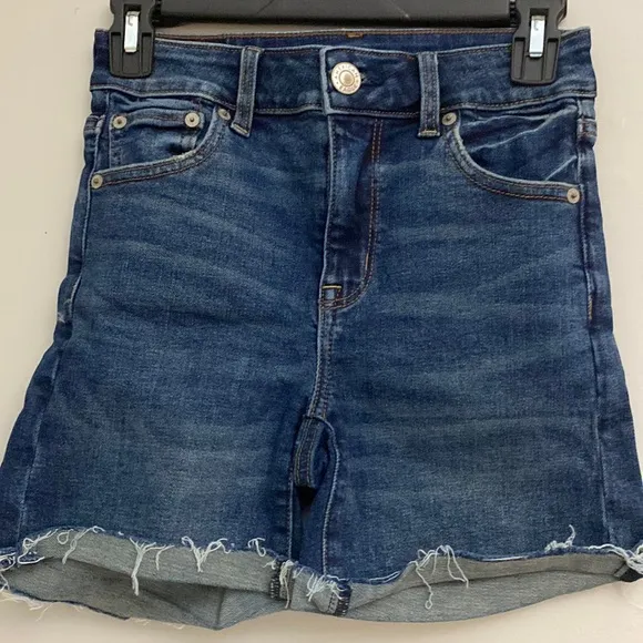 American Eagle outfitters super stretch high rise midi blue jean shorts in great condition size 0 K9... Show more