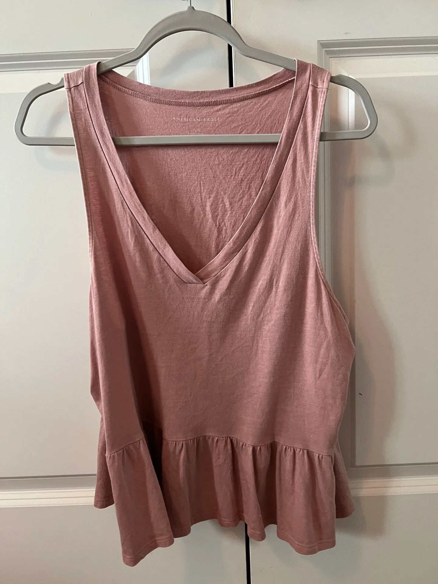 Mauve peplum v neck tank top size L barely worn good condition