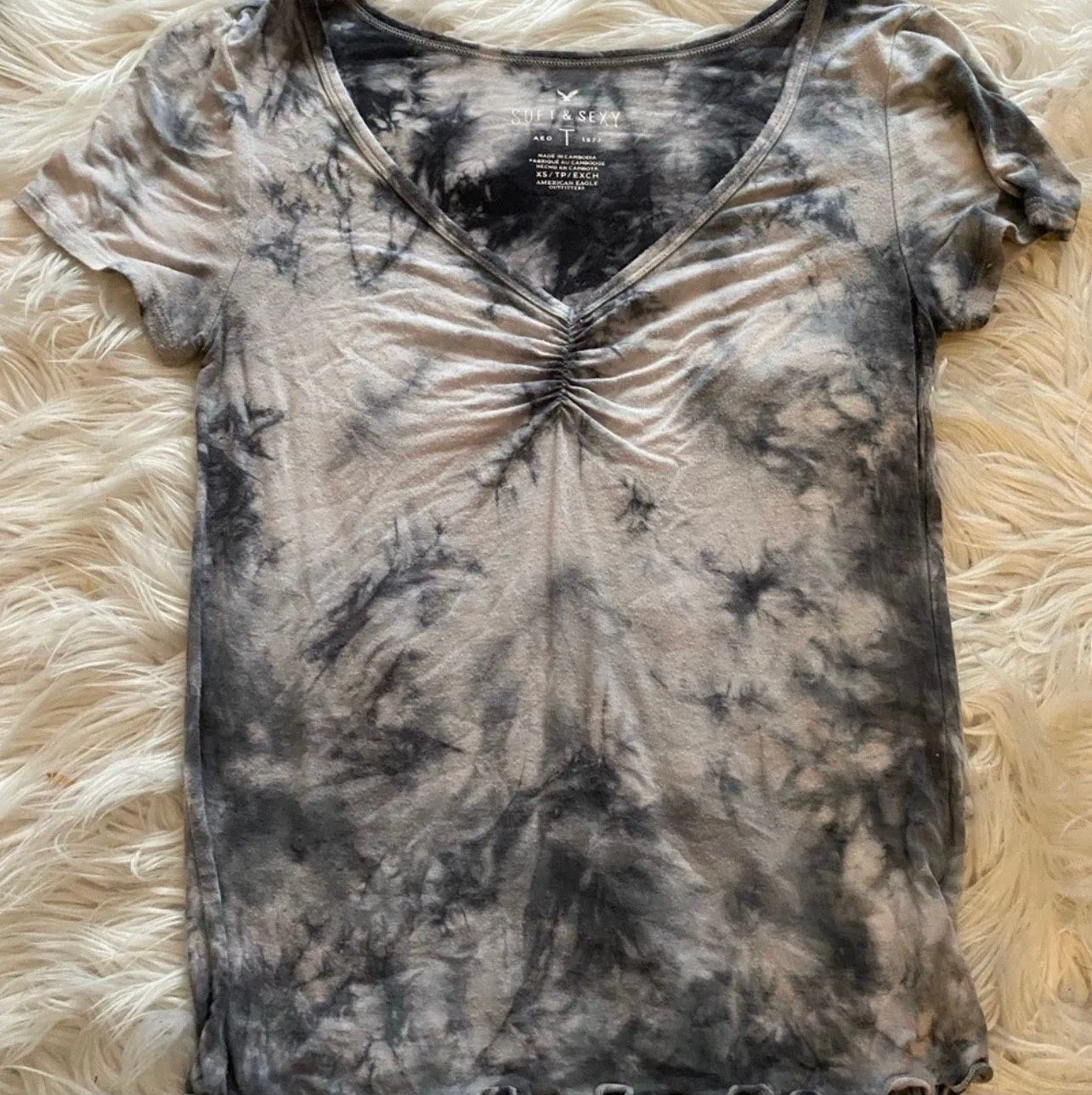 American Eagle tie dye cinched v neck top with lettuce edge hem on the bottom. super comfy sand soft... Show more