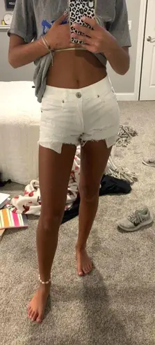 Cute white jeans shorts with pocket detailing. Perfect condition. They have a good stretch to them.