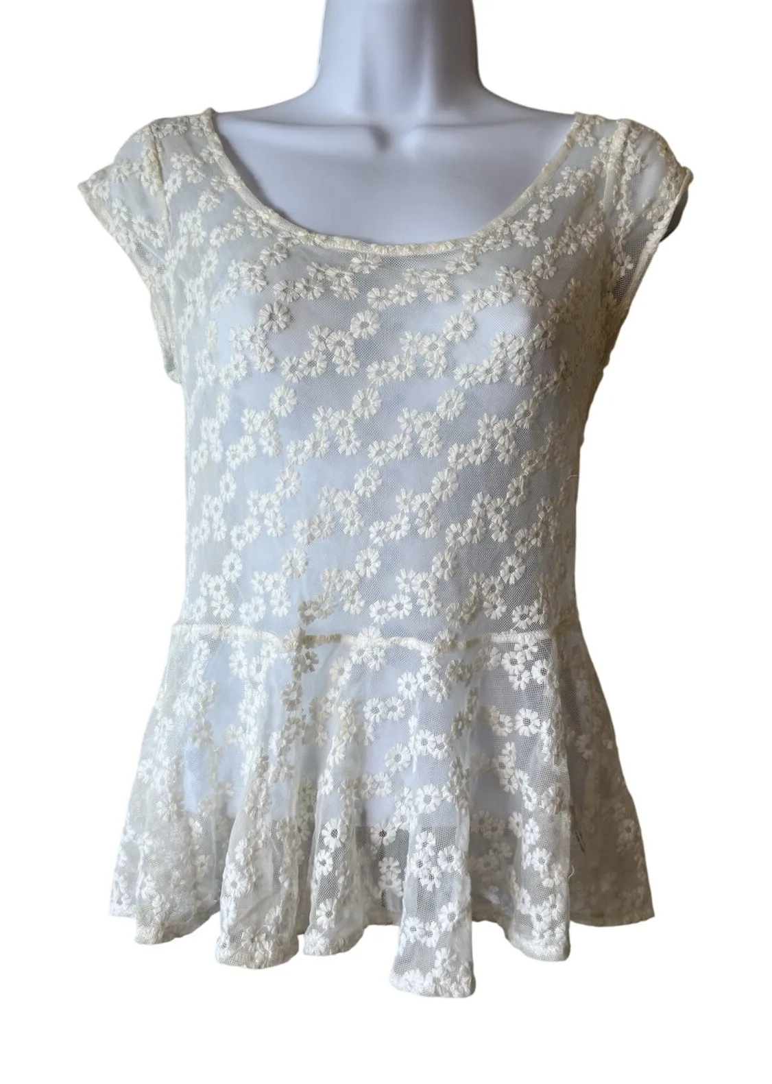 Feminine and flirty, this American Eagle Outfitters lace peplum top is perfect for layering or weari... Show more