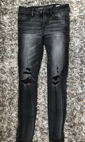 American Eagle dark grey jegging ripped jeans Great condition Size 4