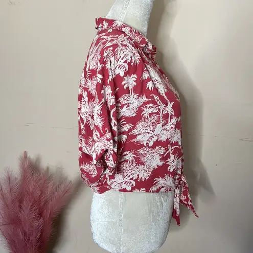Size S Color Red/Cream Excellent condition Button down Tie front Cropped fit Stretch waist hem at... Show more
