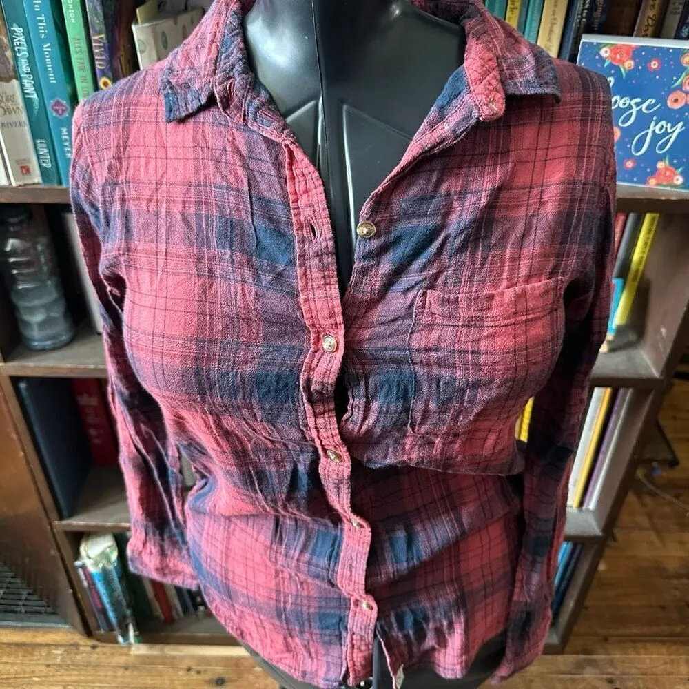 American Eagle pink and black plaid, lumberjack, tartan, boyfriend fit, button down, broken in shirt... Show more