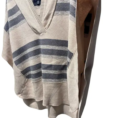 AEO American Eagle Outfitters Striped Knit V Neck Hooded Poncho Sweater Cream Gray Women's Size... Show more