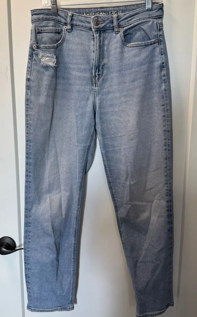 American Eagle Stretch Mom Jean Light Wash Distressed High Waist 8Long 30" measured inseam